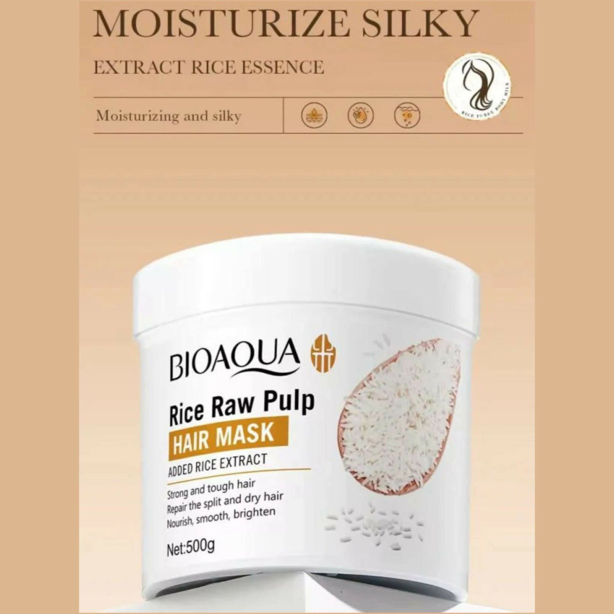 Bioaqua Rice Raw Pulp Hair Mask is a deep nourishing treatment designed for dry, damaged, and color-treated hair. Enriched with natural rice pulp and keratin, it repairs hair from root to tip, controls frizz, restores moisture, and enhances softness and shine. This mask strengthens hair strands, makes them easier to comb, and promotes smooth, healthy, and manageable hair. Ideal for regular use after washing, it penetrates deeply to repair damage caused by heat styling, coloring, and environmental stressors, leaving hair fluffy, nourished, and revitalized.