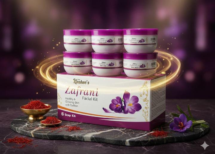 Kashee’s Zafrani Facial Kit (300ml) ek professional 6-step saffron-based facial hai jo skin ko deep cleansing ke sath instant glow, softness aur brightness deta hai. Ideal for home use, salon treatments aur bridal skincare.
